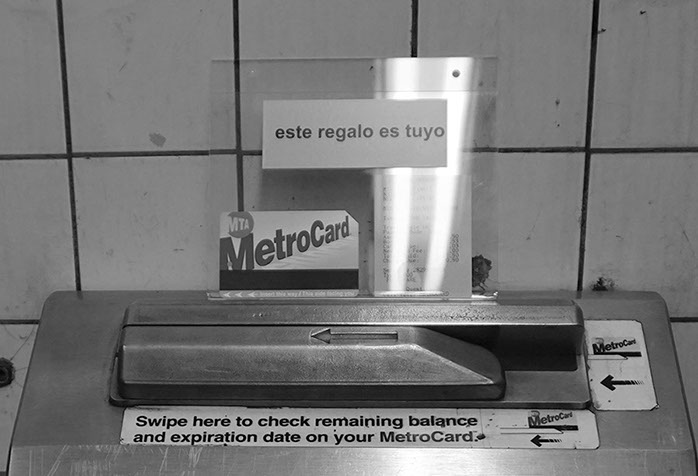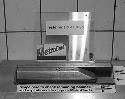 The action considers what consumers might need or want, and issues a call to action/reflection: each person has to make a decision in order to ignore, accept or leave the gift behind. Thus, a gift-capsule might trigger reflections on decisions made in both public and private spheres (the fear of being observed while taking the gift at a store versus the feeling of entitlement of taking the gift left at an empty subway station). I attempt to destabilize the expectancy
