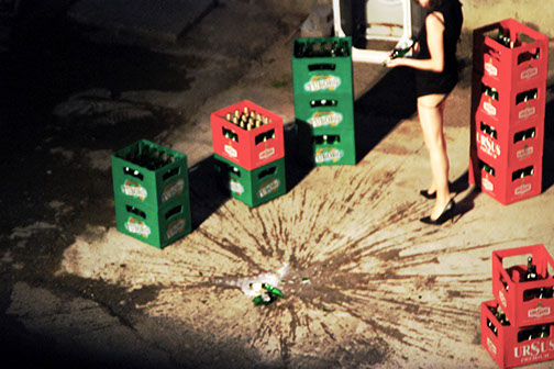 I scripted a performance in which I calmly broke beer bottles of several brands against the floor. The intention was to create accumulation of broken glass and liquid under my high heels. The action created a sonata of displeasure and irony, formulated as a beer anti-campaign. The persistence of the action returned the symbolic violence of these TV spots, which infamously posed as a celebration of the sensuality