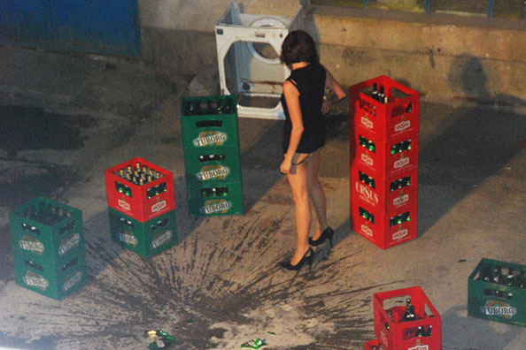 In response to this culture in the advertising industry, I scripted a performance in which I calmly broke beer bottles of several brands against the floor. The intention was to create accumulation of broken glass and liquid under my high heels. The action created a sonata of displeasure and irony, formulated as a beer anti-campaign. The persistence of the action returned the symbolic violence of these TV spots, which infamously posed as a celebration of the sensuality