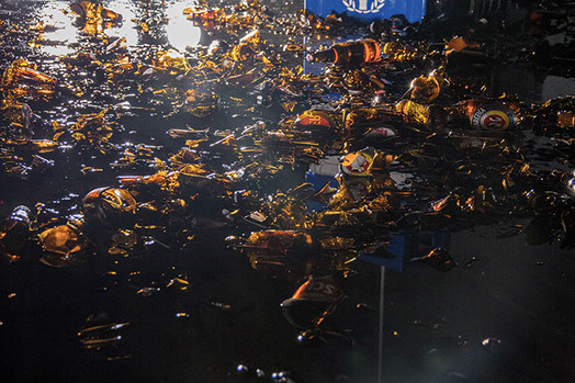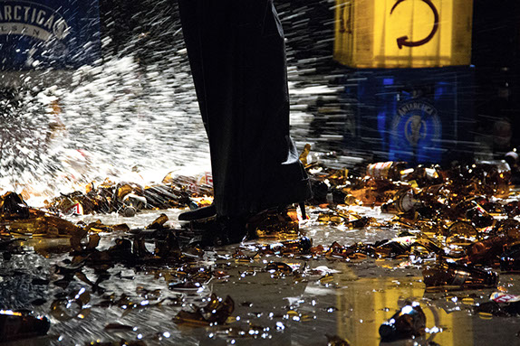 In Unbeer Sonata – Study Nº2 I repeatedly broke full beer bottles by letting them fall against the floor. The action created a 70-minute noise soundscape, during which more than 250 bottles were shattered.