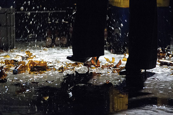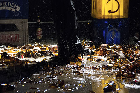 As the topography of the space is altered, the smell of beer on the floor intensifies.