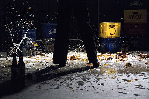 In Unbeer Sonata – Study Nº2 I repeatedly broke full beer bottles by letting them fall against the floor. The action created a
